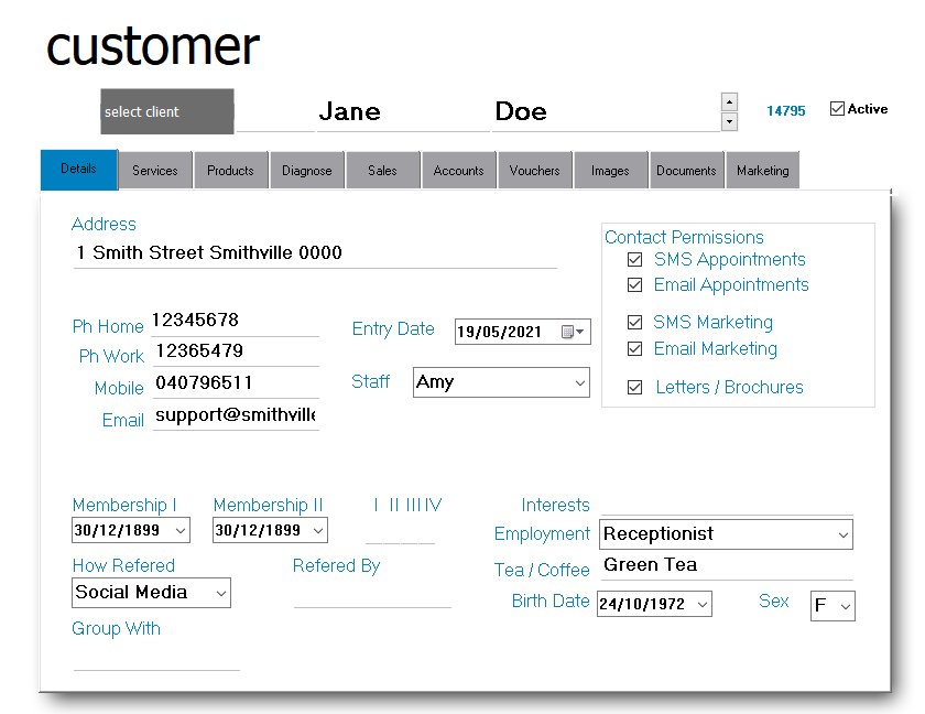 The Smallbiz Customer Module collects and stores vital details about your clients.